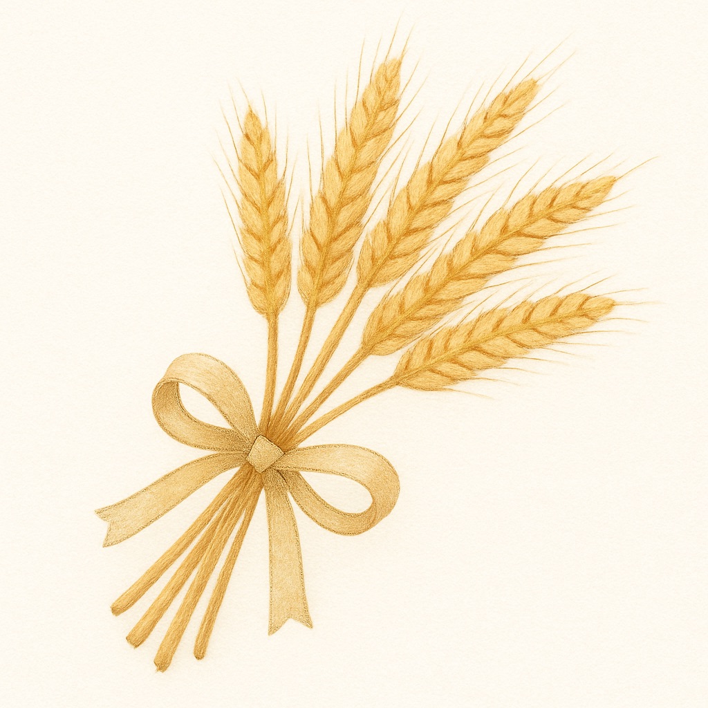 Le froment représente les noces de 3 ans car il incarne l’abondance, la prospérité et la nourriture essentielle. Grain doré qui nourrit et unit, il symbolise la récolte des premiers fruits de la vie à deux, lorsque les fondations commencent à tenir leurs promesses. À l’image du froment qui, semé et soigné, offre sa moisson, l’amour se nourrit d’efforts communs et apporte chaleur et réconfort au foyer.